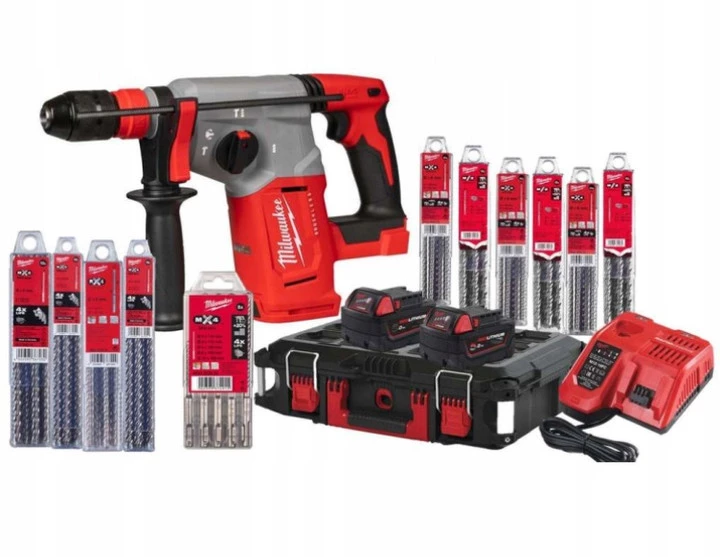- Młotowiertarka M18BLHX - 2 x Akumulator 5.0Ah - Ładowarka M12-18FC - Walizka Packout - 30 x Wiertło SDS-Plus MX4 6x165mm - 30 x Wiertło SDS-Plus MX4 8x165mm - 10 x Wiertło SDS-Plus MX4 10x215mm - 10 x Wiertło SDS-Plus MX4 12x210mm - 10 x Wiertło SDS-Plus MX4 12x260mm - Zestaw wierteł SDS-Plus 4932352833