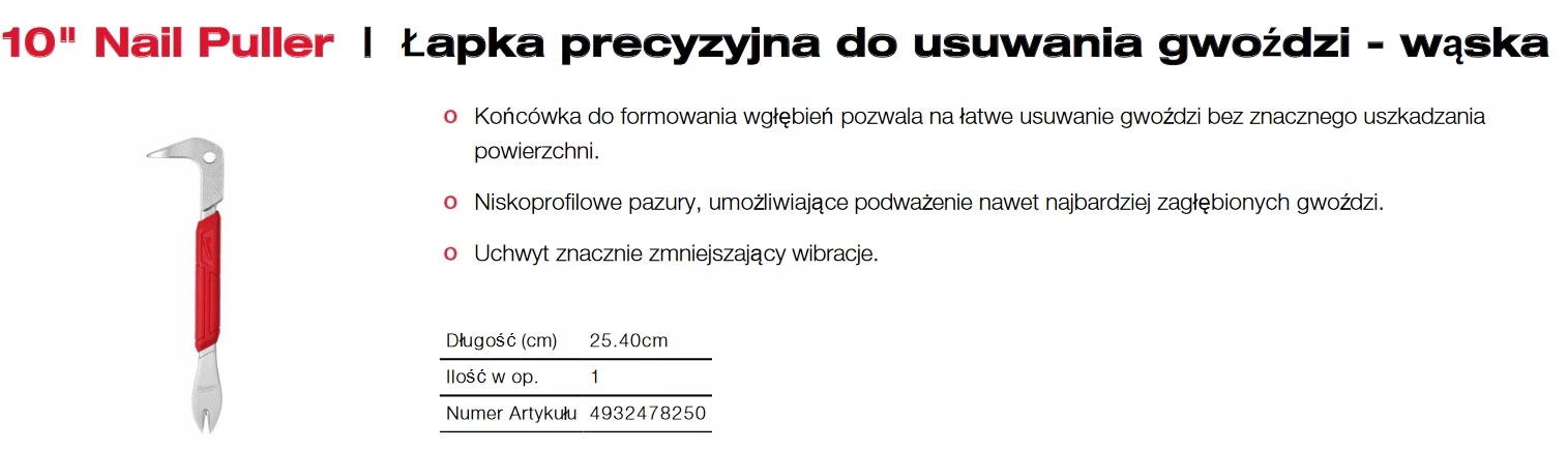 Łapka precyzyjna do wyciągania gwoździ i listew 254mm