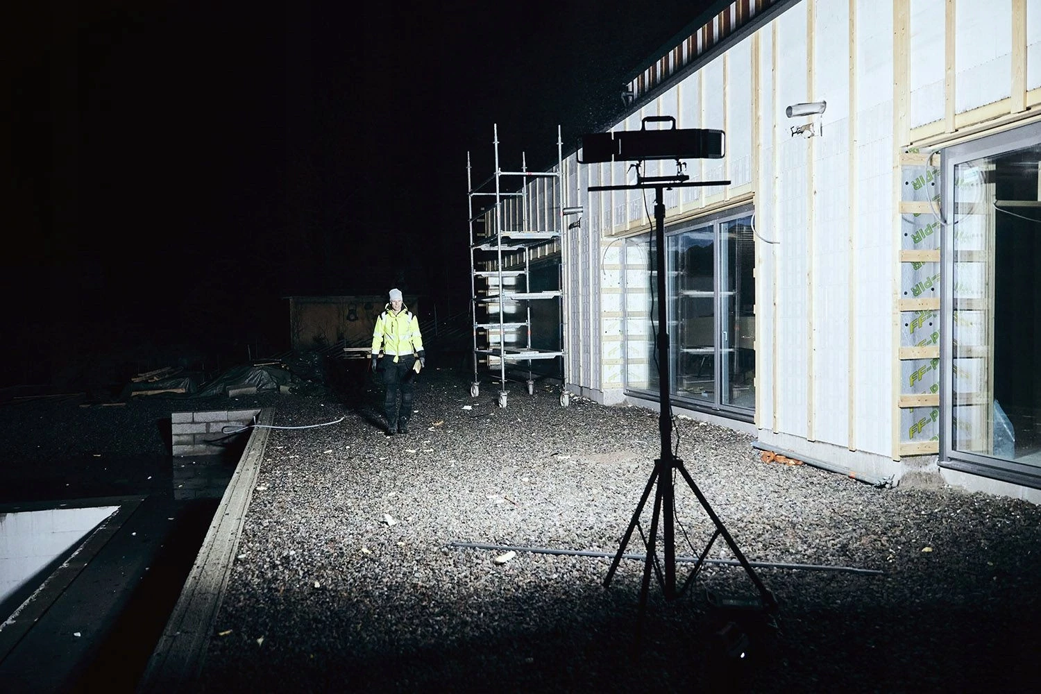 Lampa robocza posiada 3 panele świetlne, ustawiane przechyłowo, emitujące niezwykle silne światło, aż do 20 000 lumenów. Produkt współpracuje z aplikacją, która umożliwia użytkownikowi sterowanie oświetleniem ze swojego smartfona. Aplikacja pozwala włączać/wyłączać lampę, regulować siłę światła (ściemnianie), zaprogramować wyłącznik czasowy (timer), przy czym istnieje możliwość równoległego połączenia do 100 jednostek. Dodatkową funkcją jest czujnik ruchu umieszczony w skrzynce sterującej dostarczonej z lampą, dzięki czemu ??zapala się ona przy wejściu osoby w strefę 5 metrów od lampy. Gaśnie po opuszczeniu strefy 5 m. Funkcję tę można wyłączyć. Ponadto stopień ochrony IP 65 powoduje, że lampa jest odporna na wodę.