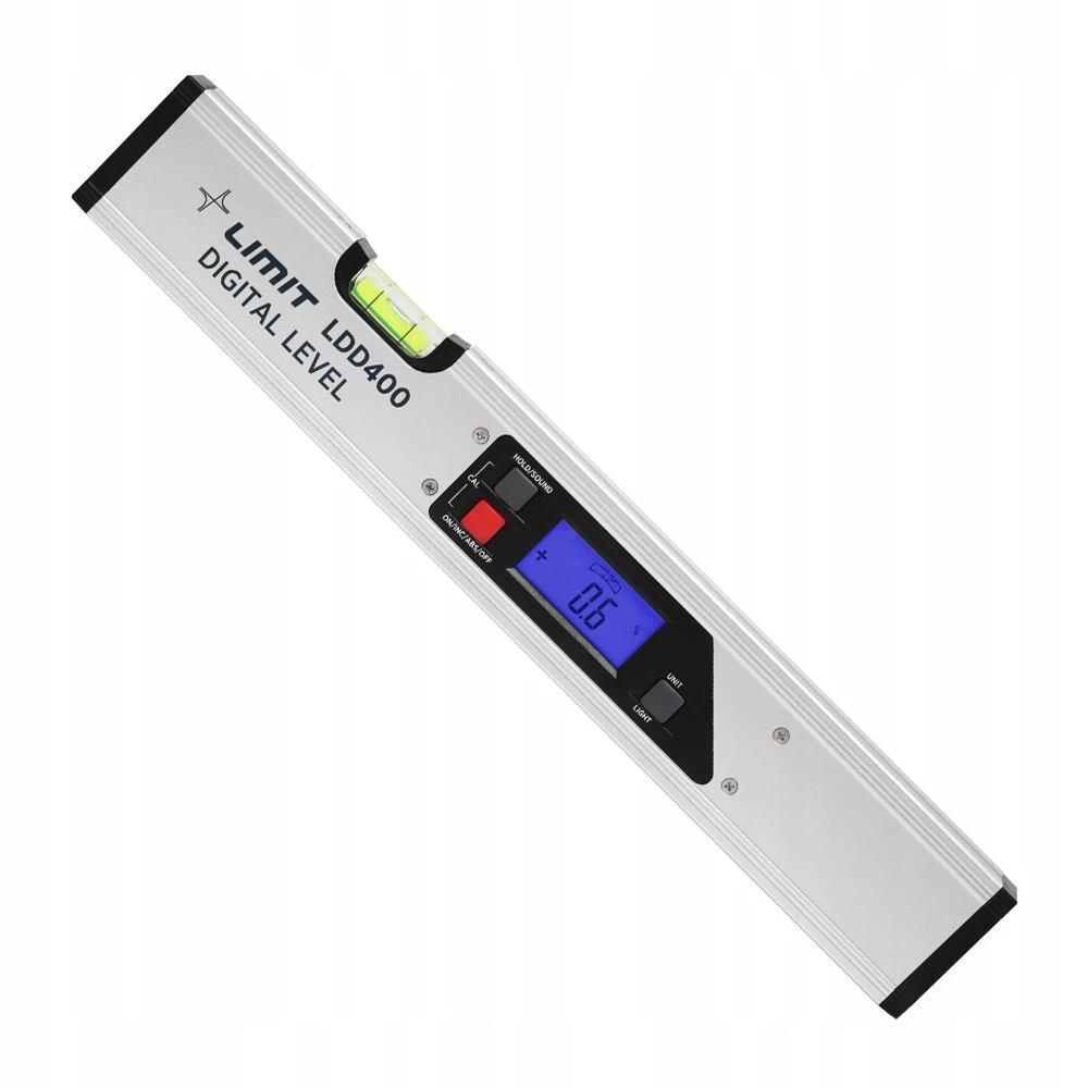 - Poziomica cyfrowa, która podaje wynik pomiaru kąta w °, mm/m, %, in/ft (cale/stopę)